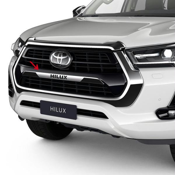 Originale Chromverzierung für die vordere Stoßstange mit dem Hilux-Logo. Verleiht dem Hilux ein einzigartiges und stilvolles Aussehen.