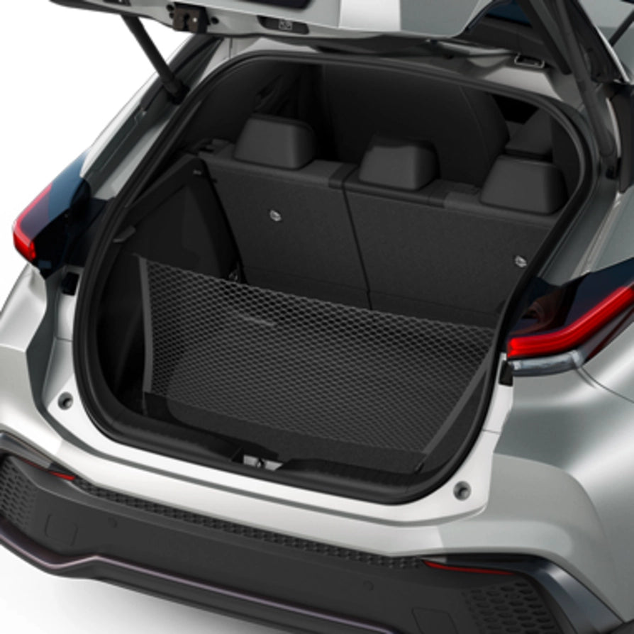 Origineel sterk, geweven, zwart net van nylon om spullen veilig in de kofferbak van uw auto op te bergen. Dit originele net wordt netjes op de voor gemonteerde haken bevestigd.